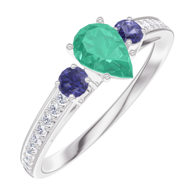 « L'ATELIER » Nº162267Anillo Oro blanco 18 quilates - Esmeralda Pera 0.3 quilates - Piedras laterales Zafiro azul - Engastado Diamante