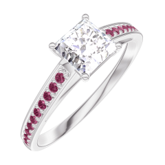 Anillo Oro blanco 18 quilates - Diamante Princesa 0.5 quilates - Engastado Rubí