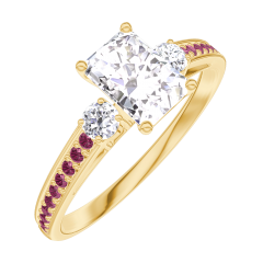 Anillo Oro amarillo 18 quilates - Diamante Rectángulo 0.5 quilates - Piedras laterales Diamante - Engastado Rubí