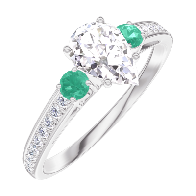« L'ATELIER » Nº162887Anillo Oro blanco 18 quilates - Diamante Pera 0.5 quilates - Piedras laterales Esmeralda - Engastado Diamante