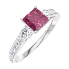 Anillo Oro blanco 18 quilates - Rubí Princesa 0.5 quilates - Piedras laterales Diamante - Engastado Diamante