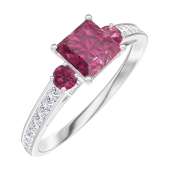 Anillo Oro blanco 18 quilates - Rubí Princesa 0.5 quilates - Piedras laterales Rubí - Engastado Diamante