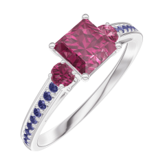 Anillo Oro blanco 18 quilates - Rubí Princesa 0.5 quilates - Piedras laterales Rubí - Engastado Zafiro azul