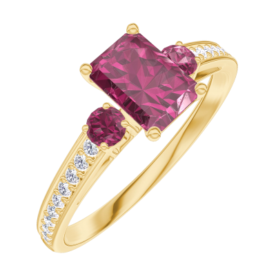 « L'ATELIER » Nº163245Anillo Oro amarillo 18 quilates - Rubí Rectángulo 0.5 quilates - Piedras laterales Rubí - Engastado Diamante