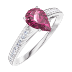 Anillo Oro blanco 18 quilates - Rubí Pera 0.5 quilates - Engastado Diamante