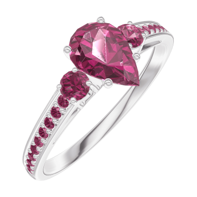 « L'ATELIER » Nº163451Anillo Oro blanco 18 quilates - Rubí Pera 0.5 quilates - Piedras laterales Rubí - Engastado Rubí