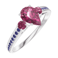 Anillo Oro blanco 9 quilates - Rubí Pera 0.5 quilates - Piedras laterales Rubí - Engastado Zafiro azul