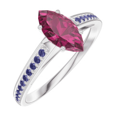 Anillo Oro blanco 9 quilates - Rubí Marquesa 0.5 quilates - Engastado Zafiro azul
