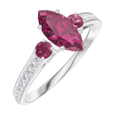 « L'ATELIER » Nº163548Anillo Oro blanco 9 quilates - Rubí Marquesa 0.5 quilates - Piedras laterales Rubí - Engastado Diamante