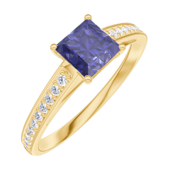Anillo Oro amarillo 18 quilates - Zafiro azul Princesa 0.5 quilates - Engastado Diamante