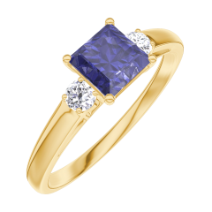 Anillo Oro amarillo 18 quilates - Zafiro azul Princesa 0.5 quilates - Piedras laterales Diamante
