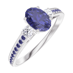 Anillo Oro blanco 18 quilates - Zafiro azul Ovalo 0.5 quilates - Piedras laterales Diamante - Engastado Zafiro azul