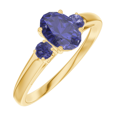 « L'ATELIER » Nº163961Anillo Oro amarillo 18 quilates - Zafiro azul Ovalo 0.5 quilates - Piedras laterales Zafiro azul