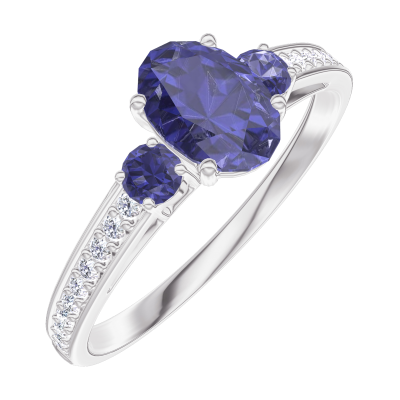 « L'ATELIER » Nº163967Anillo Oro blanco 18 quilates - Zafiro azul Ovalo 0.5 quilates - Piedras laterales Zafiro azul - Engastado Diamante