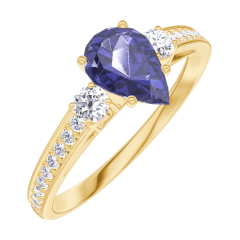 Anillo Oro amarillo 18 quilates - Zafiro azul Pera 0.5 quilates - Piedras laterales Diamante - Engastado Diamante