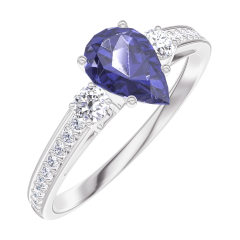 Anillo Oro blanco 9 quilates - Zafiro azul Pera 0.5 quilates - Piedras laterales Diamante - Engastado Diamante