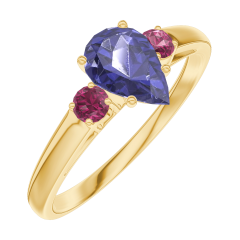 Anillo Oro amarillo 18 quilates - Zafiro azul Pera 0.5 quilates - Piedras laterales Rubí