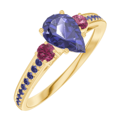Anillo Oro amarillo 18 quilates - Zafiro azul Pera 0.5 quilates - Piedras laterales Rubí - Engastado Zafiro azul