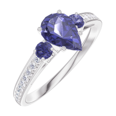 Anillo Oro blanco 18 quilates - Zafiro azul Pera 0.5 quilates - Piedras laterales Zafiro azul - Engastado Diamante