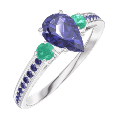 Anillo Oro blanco 18 quilates - Zafiro azul Pera 0.5 quilates - Piedras laterales Esmeralda - Engastado Zafiro azul