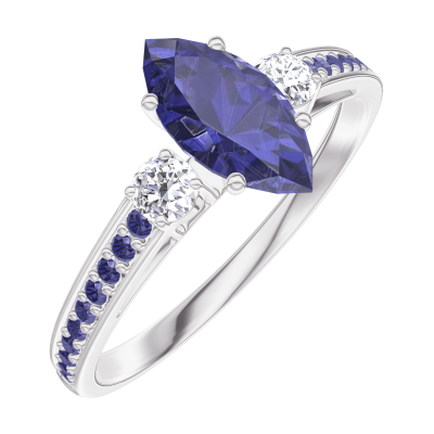 « L'ATELIER » Nº164136Anillo Oro blanco 9 quilates - Zafiro azul Marquesa 0.5 quilates - Piedras laterales Diamante - Engastado Zafiro azul