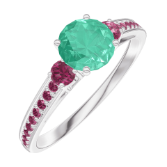 Anillo Oro blanco 9 quilates - Esmeralda redondo 0.5 quilates - Piedras laterales Rubí - Engastado Rubí