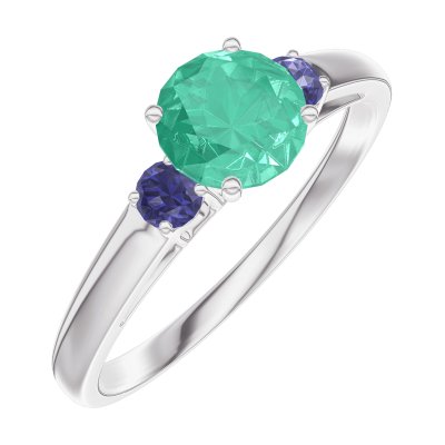 « L'ATELIER » Nº164263Anillo Oro blanco 18 quilates - Esmeralda redondo 0.5 quilates - Piedras laterales Zafiro azul 4.9 (16)