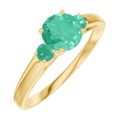 Anillo Oro amarillo 9 quilates - Esmeralda redondo 0.5 quilates - Piedras laterales Esmeralda