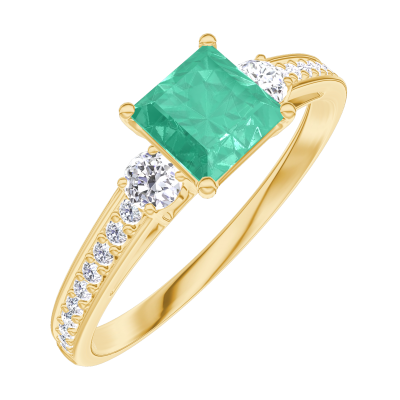 « L'ATELIER » Nº164326Anillo Oro amarillo 9 quilates - Esmeralda Princesa 0.5 quilates - Piedras laterales Diamante - Engastado Diamante