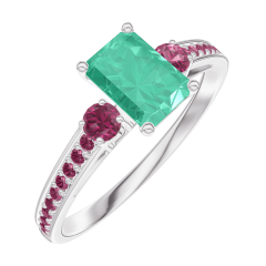 Anillo Oro blanco 9 quilates - Esmeralda Rectángulo 0.5 quilates - Piedras laterales Rubí - Engastado Rubí