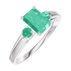 Anillo Oro blanco 9 quilates - Esmeralda Rectángulo 0.5 quilates - Piedras laterales Esmeralda