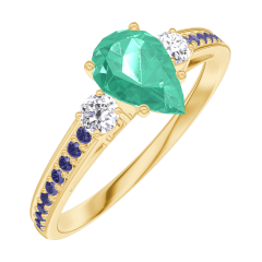 Anillo Oro amarillo 18 quilates - Esmeralda Pera 0.5 quilates - Piedras laterales Diamante - Engastado Zafiro azul