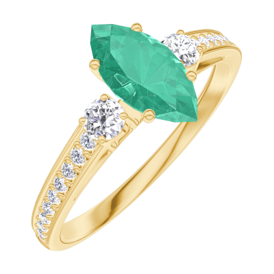 « L'ATELIER » N.º 164726Anillo Oro amarillo 9 quilates - Esmeralda Marquesa 0.5 quilates - Piedras laterales Diamante - Engastado Diamante