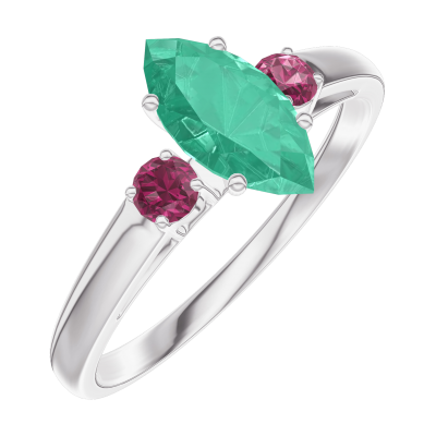 « L'ATELIER » Nº164743Anillo Oro blanco 18 quilates - Esmeralda Marquesa 0.5 quilates - Piedras laterales Rubí