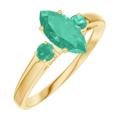 Anillo Oro amarillo 18 quilates - Esmeralda Marquesa 0.5 quilates - Piedras laterales Esmeralda