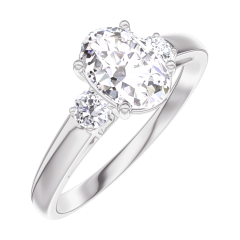 Anillo Oro blanco 18 quilates - Diamante Ovalo 0.7 quilates - Piedras laterales Diamante