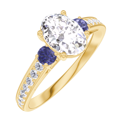 « L'ATELIER » Nº165166Anillo Oro amarillo 9 quilates - Diamante Ovalo 0.7 quilates - Piedras laterales Zafiro azul - Engastado Diamante