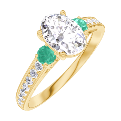 « L'ATELIER » Nº165185Anillo Oro amarillo 18 quilates - Diamante Ovalo 0.7 quilates - Piedras laterales Esmeralda - Engastado Diamante