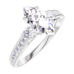 Anillo Oro blanco 18 quilates - Diamante Marquesa 0.7 quilates - Piedras laterales Diamante - Engastado Diamante