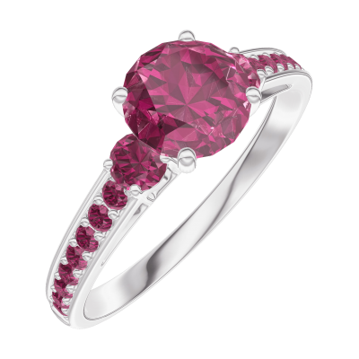 « L'ATELIER » Nº165451Anillo Oro blanco 18 quilates - Rubí redondo 0.7 quilates - Piedras laterales Rubí - Engastado Rubí 5