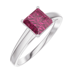Anillo Oro blanco 9 quilates - Rubí Princesa 0.7 quilates