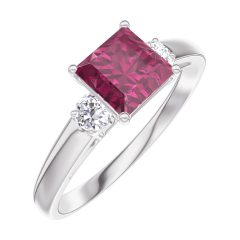 « L'ATELIER » N.º 165524Anillo Oro blanco 9 quilates - Rubí Princesa 0.7 quilates - Piedras laterales Diamante