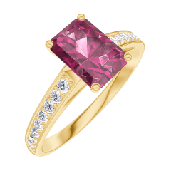 Anillo Oro amarillo 18 quilates - Rubí Rectángulo 0.7 quilates - Engastado Diamante