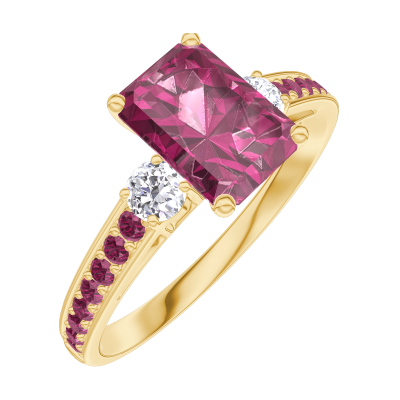 « L'ATELIER » N.º 165630Anillo Oro amarillo 9 quilates - Rubí Rectángulo 0.7 quilates - Piedras laterales Diamante - Engastado Rubí