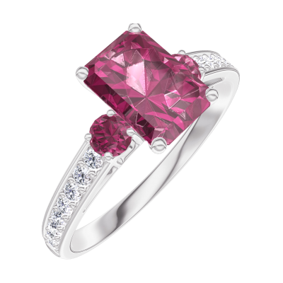 « L'ATELIER » Nº165648Anillo Oro blanco 9 quilates - Rubí Rectángulo 0.7 quilates - Piedras laterales Rubí - Engastado Diamante
