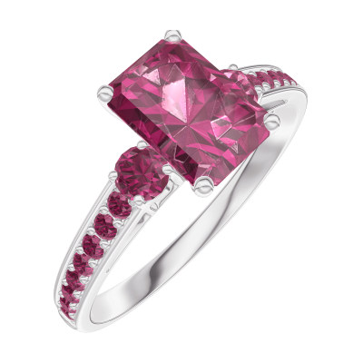 « L'ATELIER » Nº165652Anillo Oro blanco 9 quilates - Rubí Rectángulo 0.7 quilates - Piedras laterales Rubí - Engastado Rubí