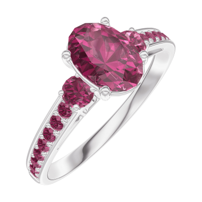 « L'ATELIER » Nº165751Anillo Oro blanco 18 quilates - Rubí Ovalo 0.7 quilates - Piedras laterales Rubí - Engastado Rubí