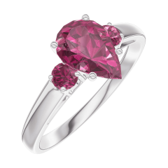 Anillo Oro blanco 9 quilates - Rubí Pera 0.7 quilates - Piedras laterales Rubí