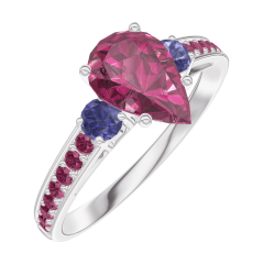 Anillo Oro blanco 9 quilates - Rubí Pera 0.7 quilates - Piedras laterales Zafiro azul - Engastado Rubí