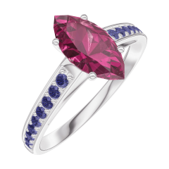 Anillo Oro blanco 18 quilates - Rubí Marquesa 0.7 quilates - Engastado Zafiro azul